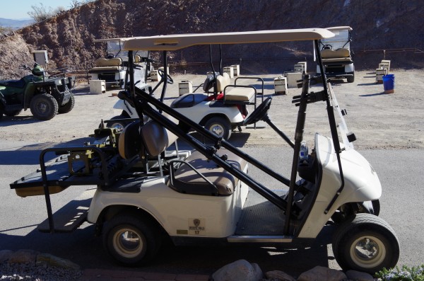 射的場へはこのゴルフカートみたいなのに乗って向かうようです。