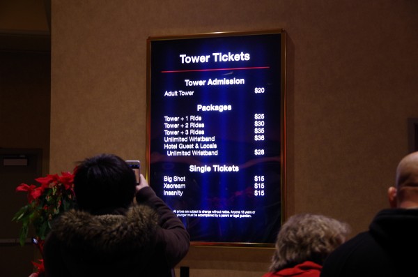 早速チケット購入ですが……タワーに上るのが$20、1アトラクション$5です。
