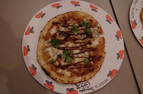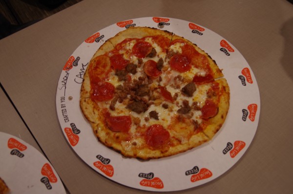 夕飯はピッツァ!!アメリカのピザですがとても美味しゅうございました……。