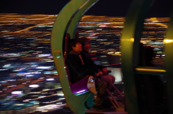 展望台の外に引きずりだされた挙げ句高速回転させられる強烈なアトラクション。