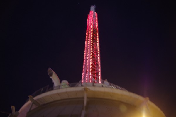 怖い物知らずのバカたれを展望台から宇宙に打ちあげるアトラクション。
