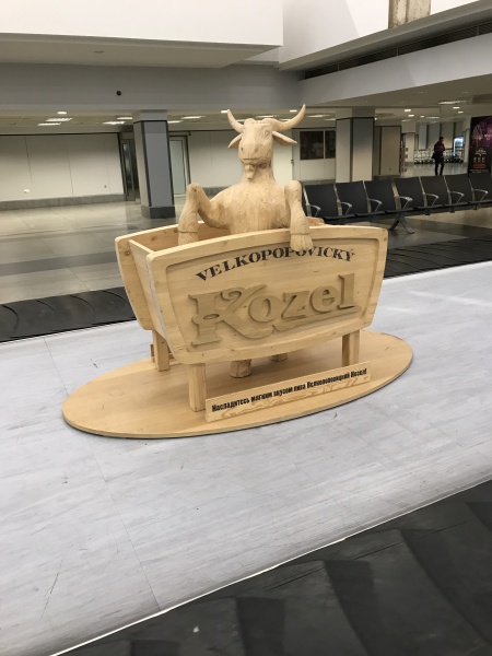 プラハ空港へ到着すると木彫りのヤギが出迎えてくれた。