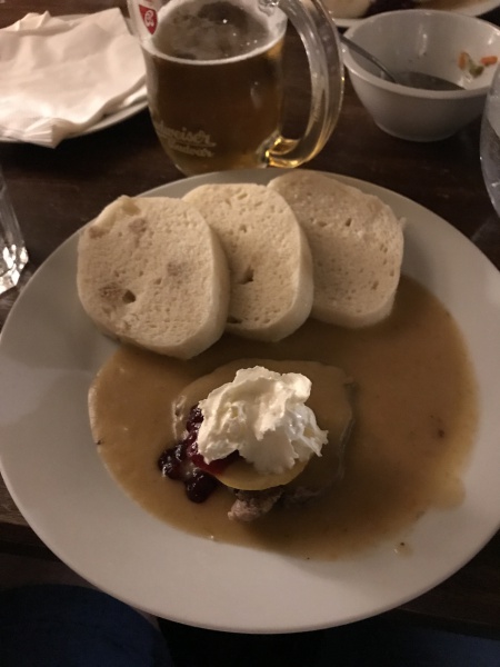 昼食は「Penzion Mastal」にて牛肉とクリドーネ(チェコの蒸しパン)