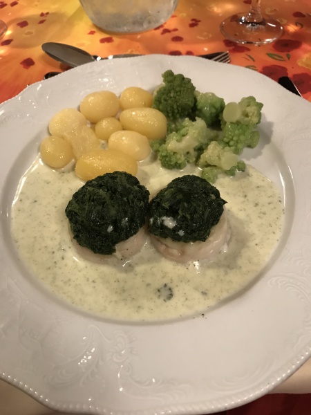 白身魚のロール巻・ホワイトソース。ロマネスコとポテト