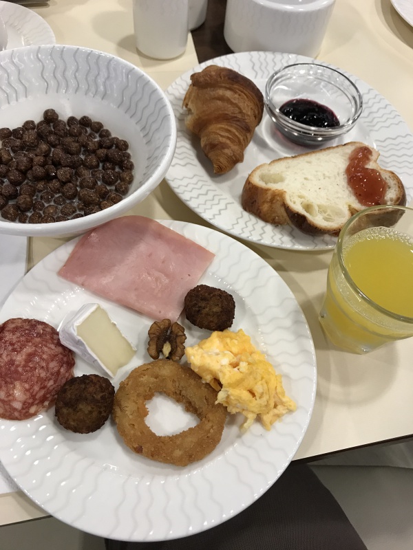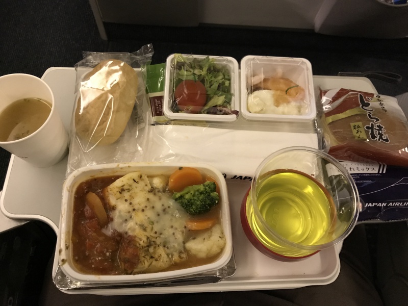 機内食のどら焼きと味噌汁に心を奪われたぺい。
