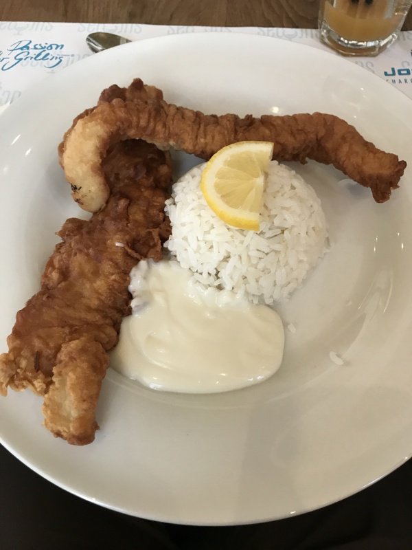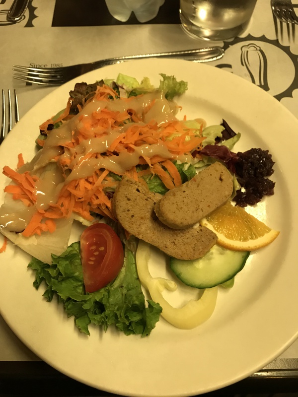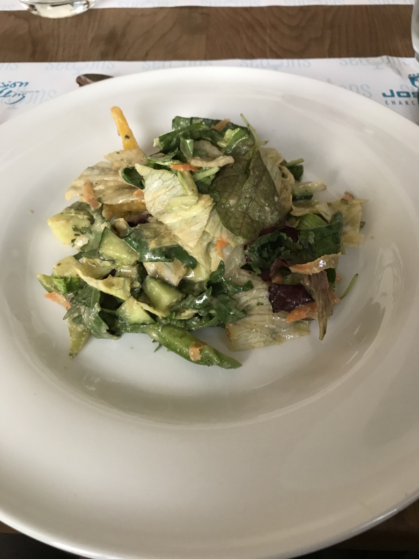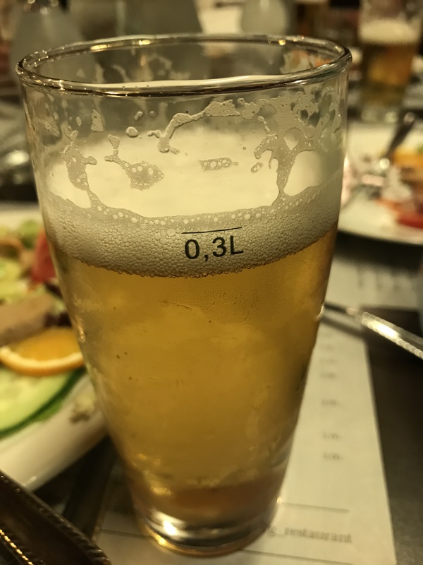 ビール、サラダ、メインのチキン、デザートといつものミニコースとなっていた。