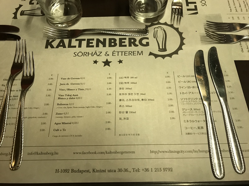 席につくとまずナプキンがあるので広げると、いろんな言語のメニューとなっている。