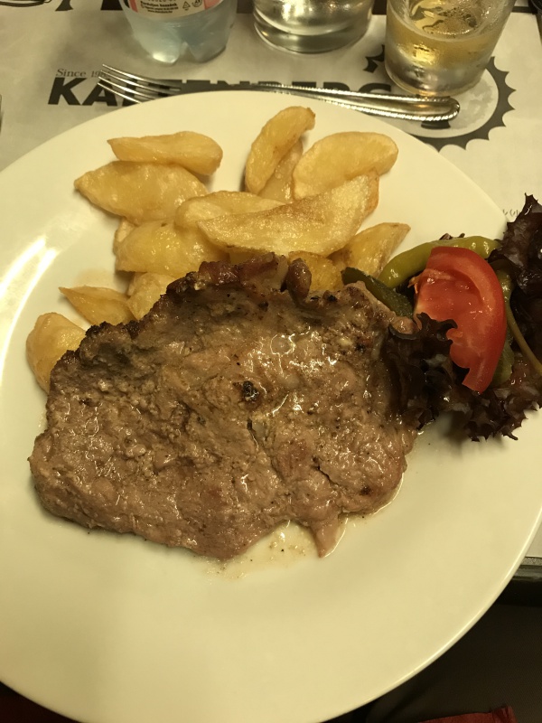 ビールを注文し、フォアグラ入りのサラダを迎える。そしていよいよマンガリッツァ豚が出てきた。