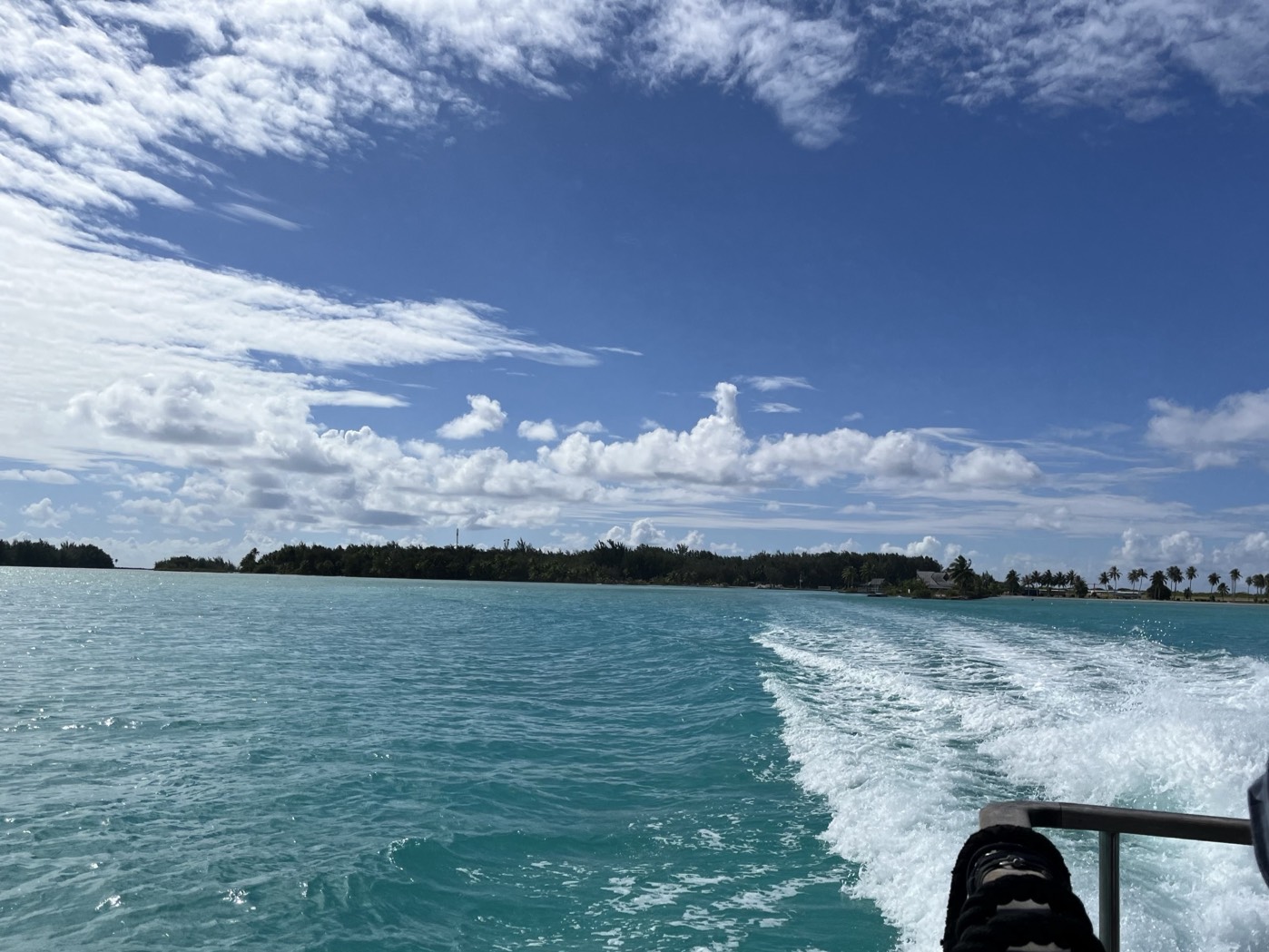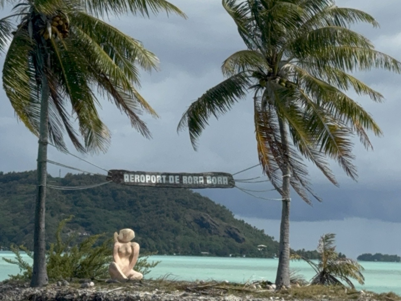 タヒチから離陸して50分。ボラボラ島に到着しました。ボラボラ島は中心に本島、周りに小さい島が囲む島ですが、空港は周りを囲む小さい島にあるので、荷物を受け取ったらホテルがある島まで船で向かいます。大体20分ぐらいでホテルに着きます。