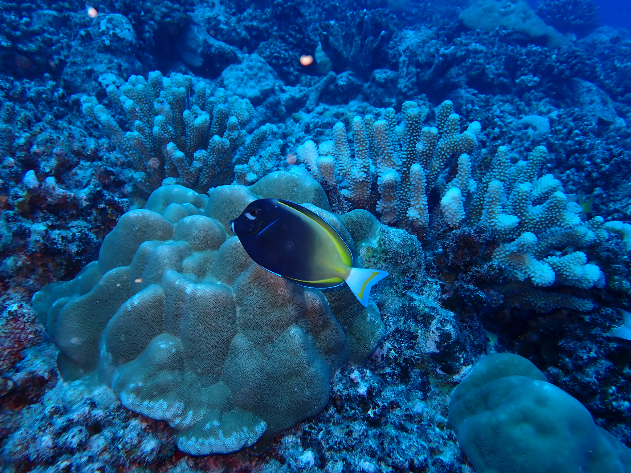 昨日よりも少し深度が深いところから泳いでいきます。今日も透明度は高いです。
