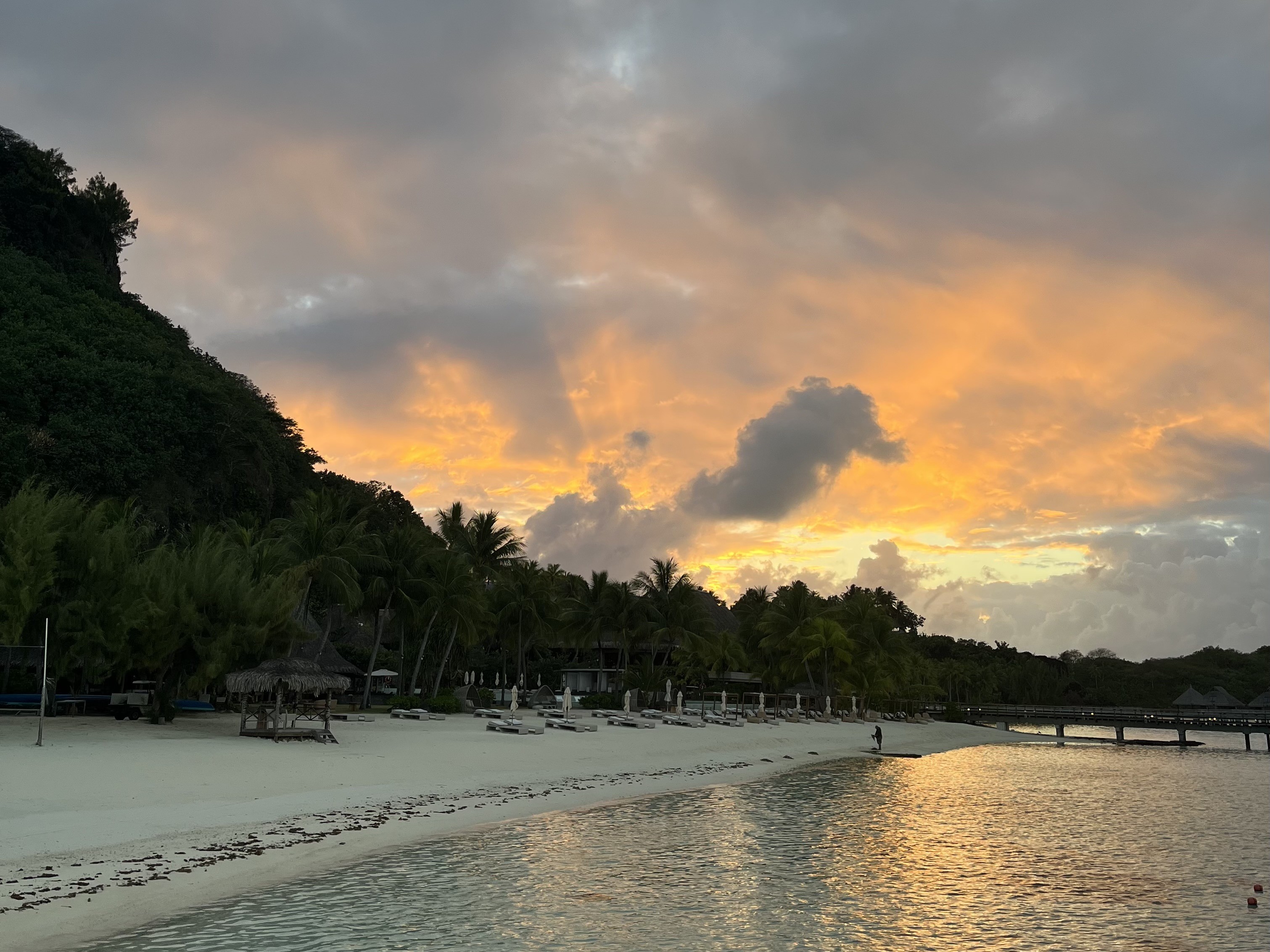 5日目の朝が来ました。水上コテージに移動してもなお朝が早いMMリッチは浜辺を散歩することにしました。