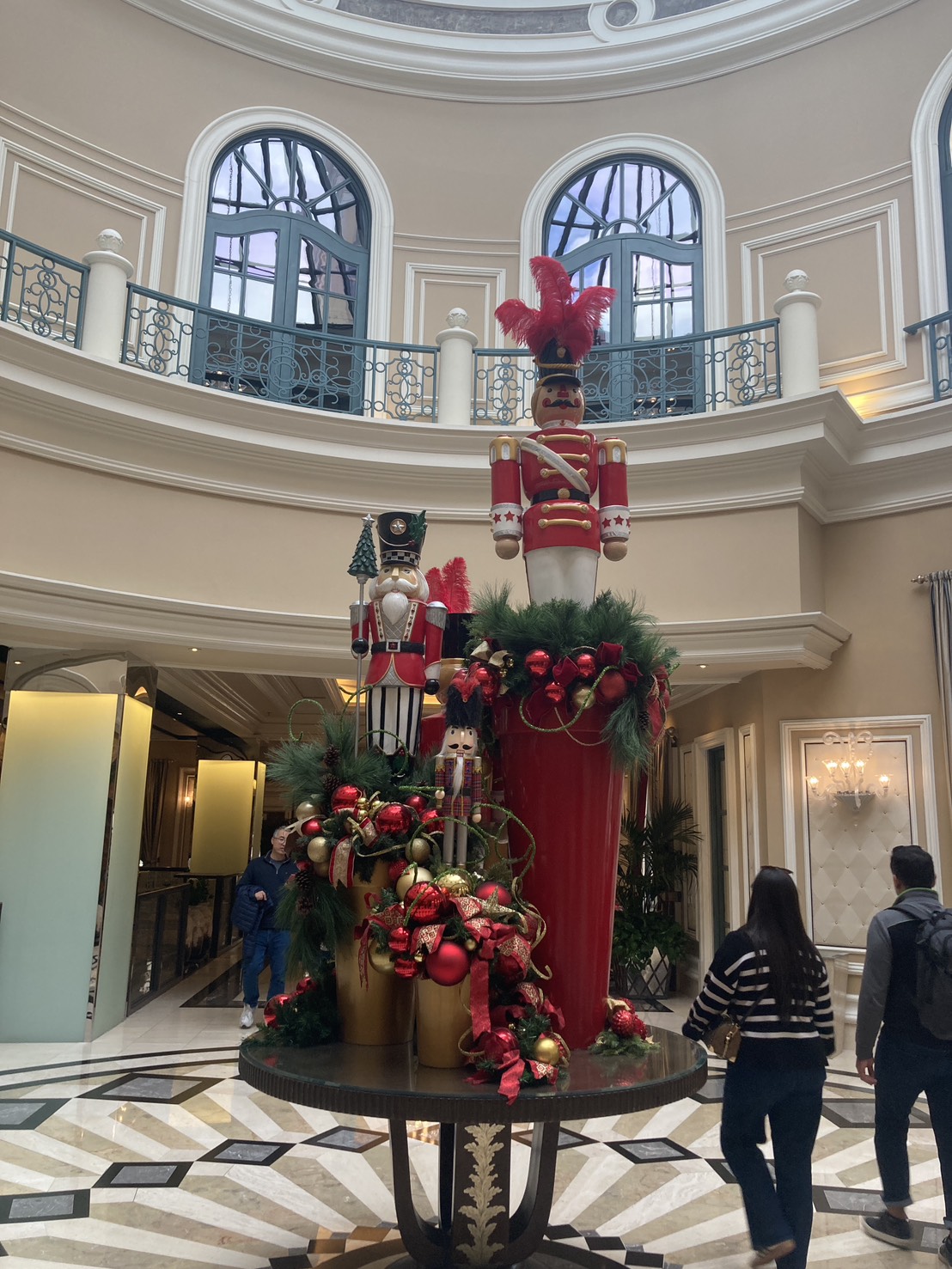 廊下。いたるところにクリスマス仕様の飾り付けが。