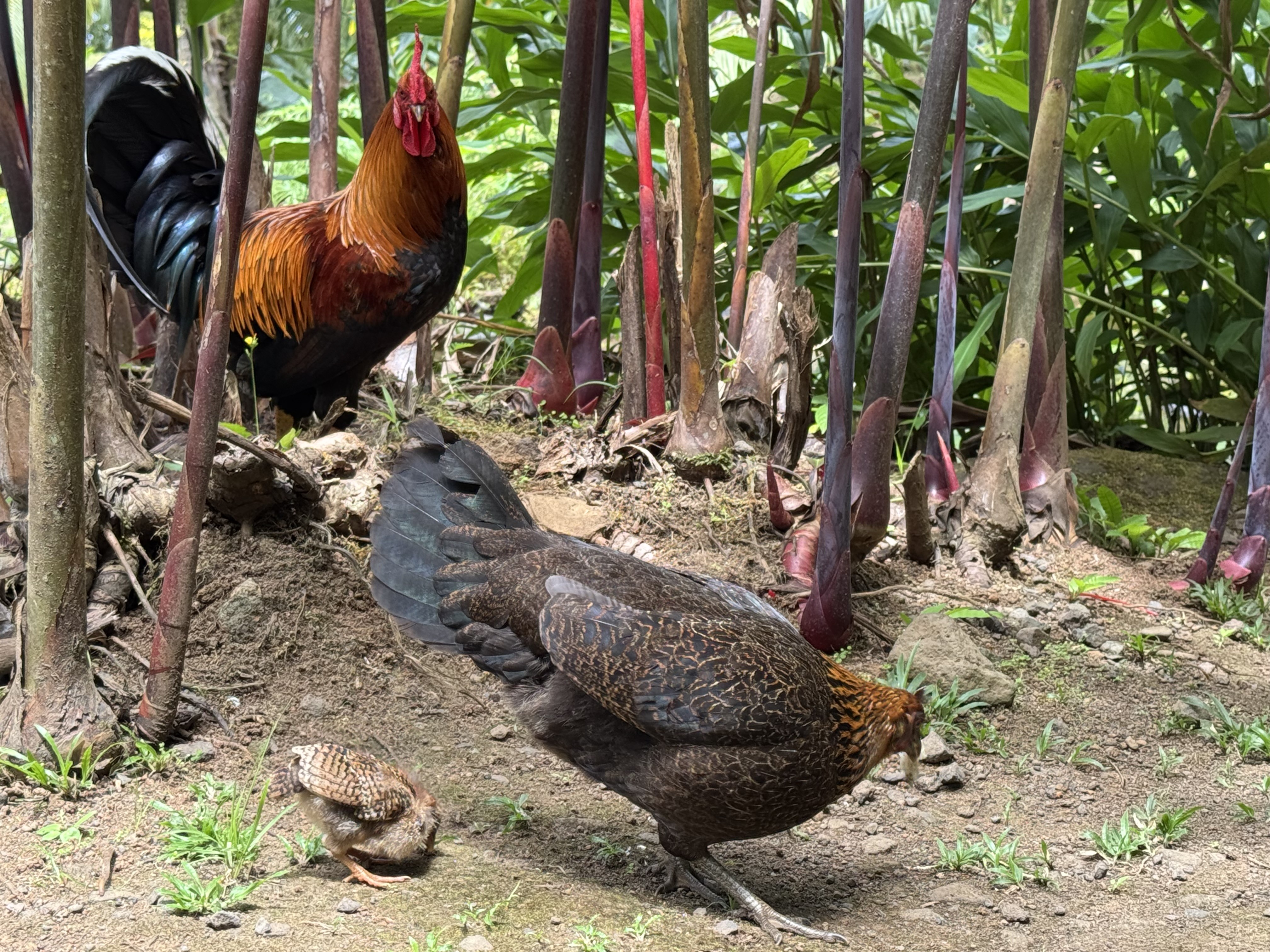 次に向かったのはウォーターガーデン バイパヒです。タヒチの植物を楽しめる場所です。カラフルでエキゾチックな植物や花、大きな滝もありました。鶏やヒナも沢山いました。時間があればハイキングコースもある施設なので、タヒチの自然を楽しみたい方にはお勧めの場所です。