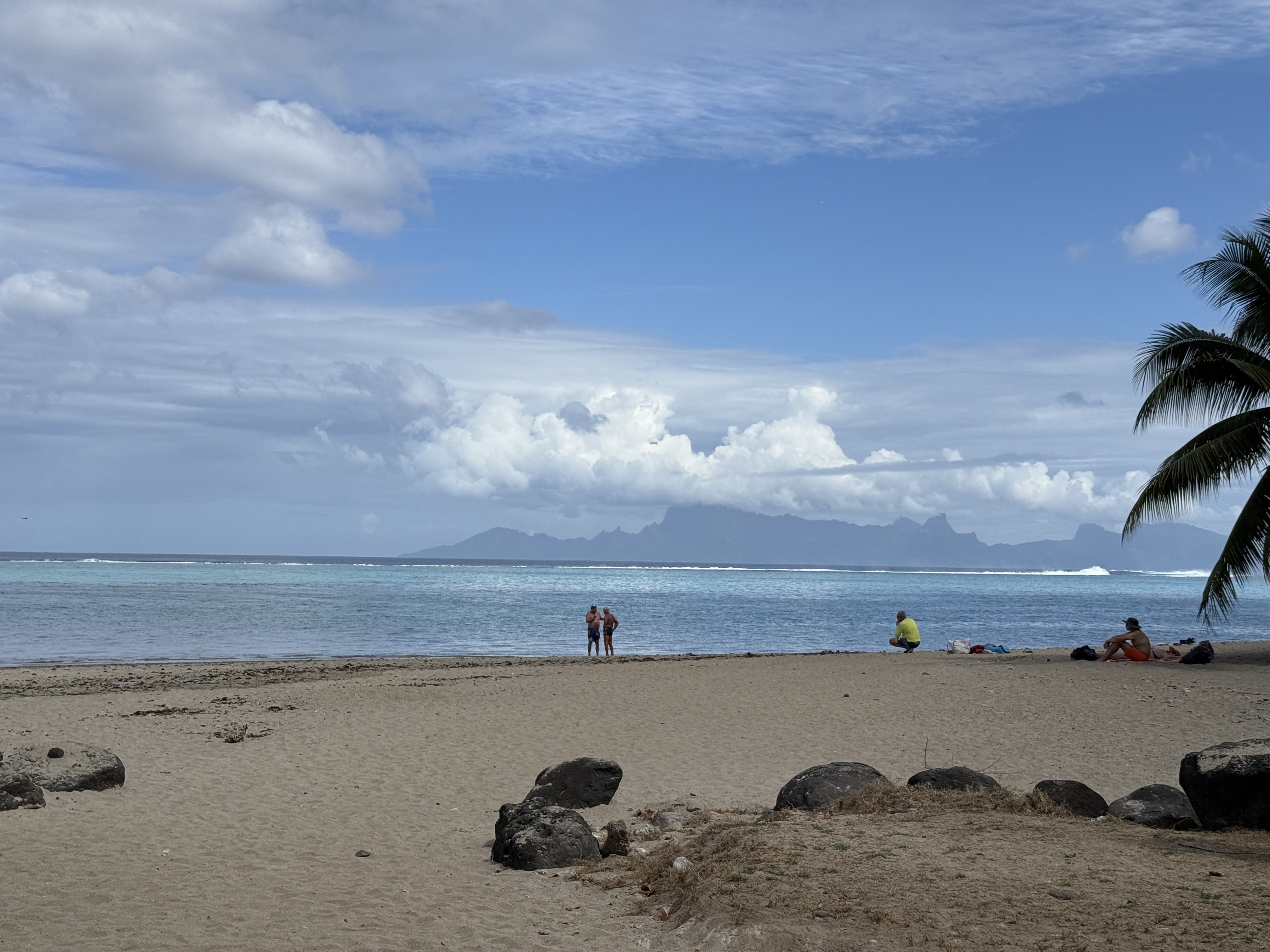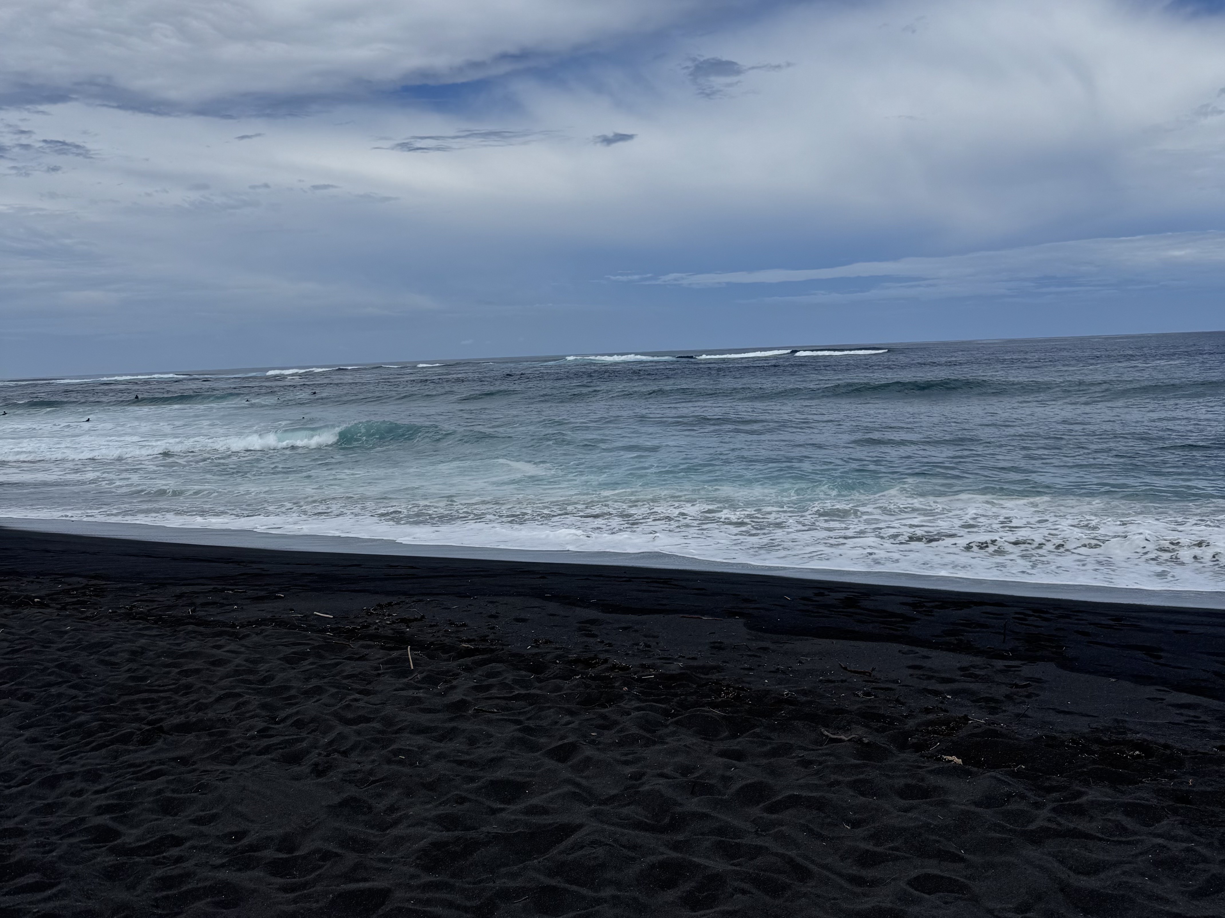 次に向かったのはタヒチ島ならではの黒砂ビーチであるタハルビーチです。カジノバのアイスランド探検で黒いビーチを見たそうですが、自分は初めて見たので衝撃的でした。